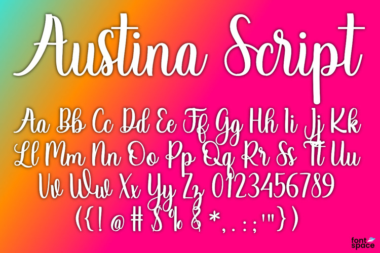Austina Script Font is a Wedding font and was created on . Since then, it has been downloaded 2,759 times and added to 80 collections. 2 people have liked Austina Script Font and given it a thumbs up.