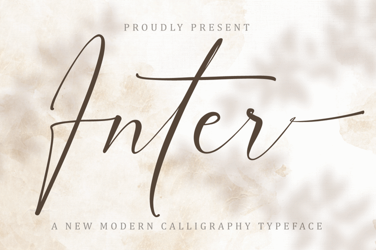 Inter font is a calligraphy script font known for its exquisite and varied characters, blending classic decorative copper script elements with a modern twist. Designed with meticulous detail, it exudes stylish elegance and appeals as a typeface that is smooth, clean, feminine, sensual, glamorous, and notably easy to read due to its intricate letter connections. The font offers multiple viable style alternatives for many letters, enhancing its versatility.